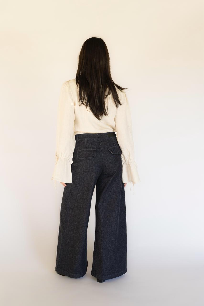 De espíritu etéreo, la camisa romántica de lino destaca por sus mangas amplias con puños fruncidos y la sutileza de su cuello mao. Una prenda pensada para acompañar el día con frescura, manteniendo siempre un aire elegante y femenino.
