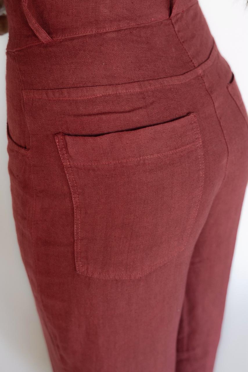 De corte relajado y confeccionado en lino 100%, este pantalón combina comodidad y diseño versátil. Tiene bolsillos prácticos y un detalle de botones en el bajo, que permiten ajustar la silueta y darle un efecto abuchonado según el estilo que busques.
